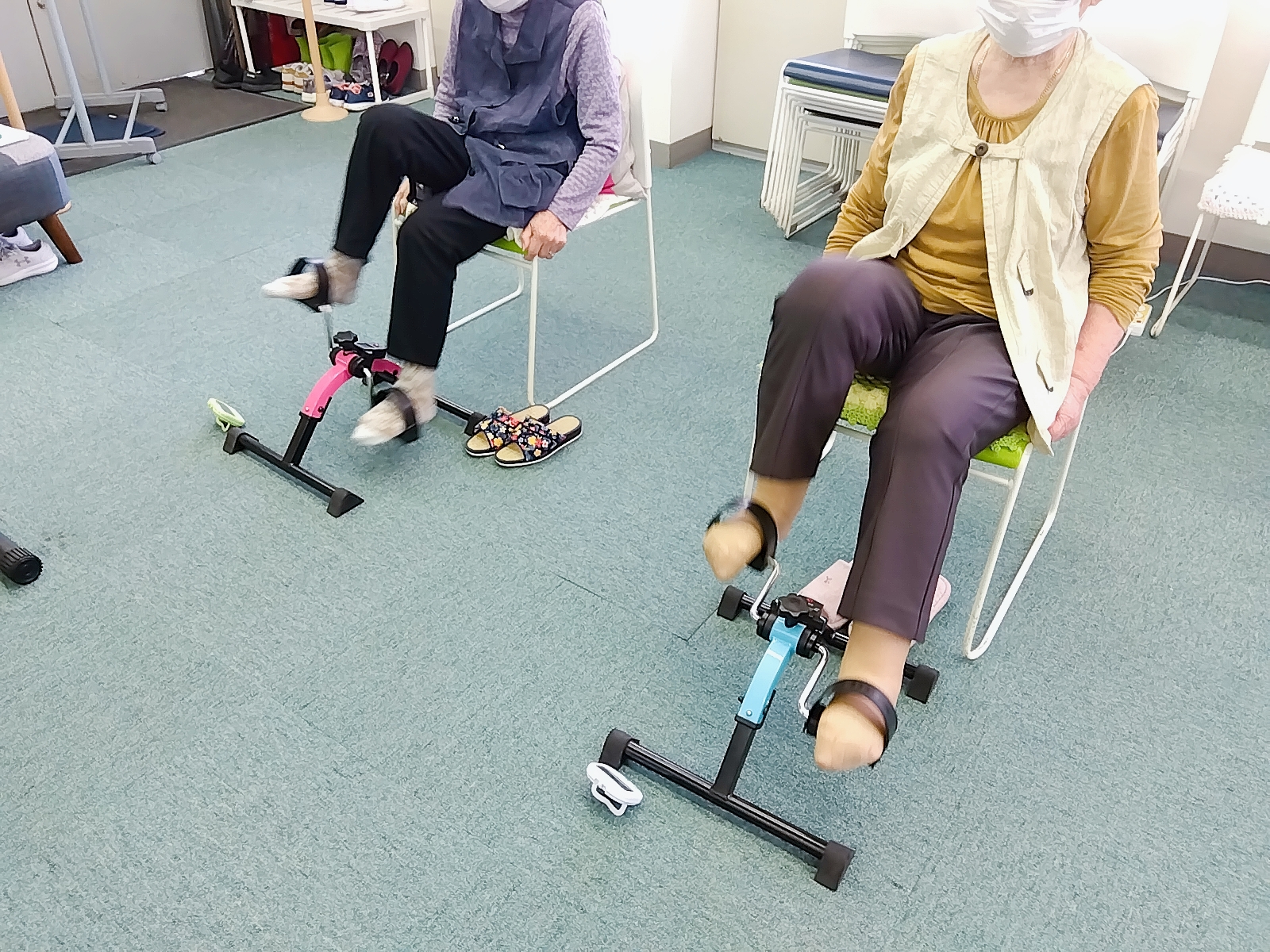 大枝スタジオでは下肢の筋力を増強させる大腿四頭筋訓練や腸腰筋を鍛えるトレーニングを多めに行います。